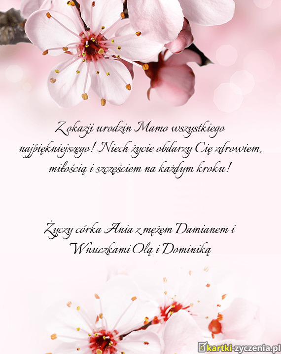 Życzy córka Ania z mężem Damianem i Wnuczkami Olą i Dominiką